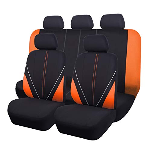 Flying Banner Set completo di coprisedili per auto in tessuto traspirante universale (nero e arancione)
