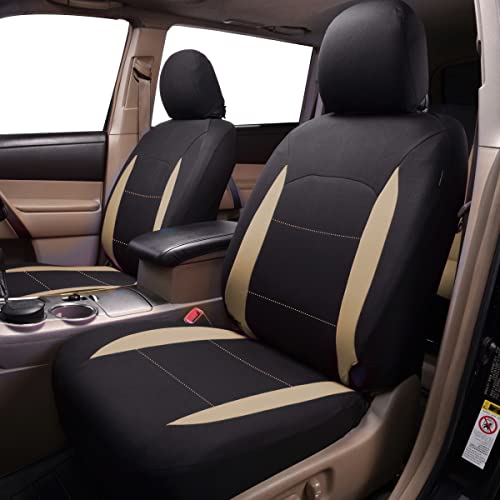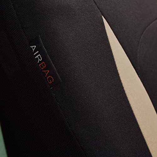 Flying Banner Set completo di coprisedili universali per auto, in tessuto piatto, compatibili con airbag (nero e beige)