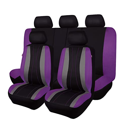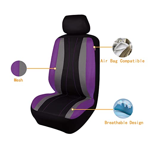 Flying Banner Coprisedili universali in rete traspirante, set completo, compatibili con airbag (nero e viola)