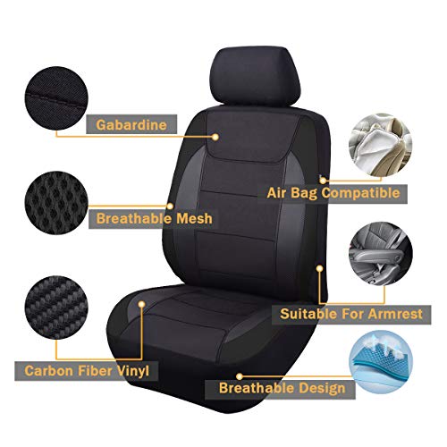 Flying Banner Gabardine - Coprisedili anteriori per auto, airbag, protezione universale per la maggior parte delle auto, camion, furgoni, SUV, colore: nero