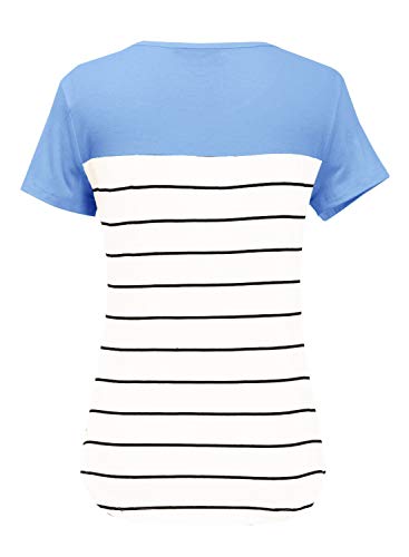 Camicia a righe, maniche lunghe e maniche corte. Maglia da donna semplice ed elegante.