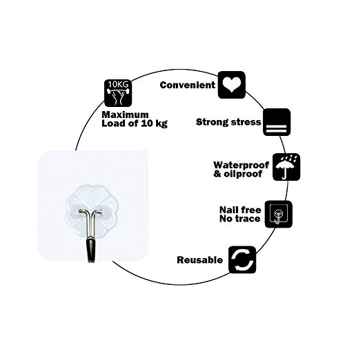 Flying swallow [20 Pezzi] Ganci Adesivi Trasparente Ganci Chiodo Libero Gancio Autoadesivo Adesivo Ganci a parete per Cucina Bagno Porta Soffitto Appendiabiti,Impermeabile e Oilproof