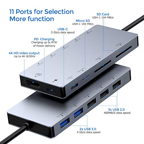 FLYLAND Hub USB C con HDMI 4K, Porte USB 3.0 e 2.0 Gbps 5.0, Lettore di schede Micro SD/SDXC, Porta di Ricarica, 11 in 1 in Alluminio Tipo C per MacBookPro / 2017/2018, Dispositivo di Tipo C (Grey)