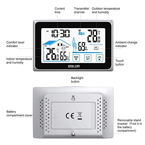 FLYLAND Stazione meteorologica Wireless,Stazione di previsione del termometro Digitale Interno Esterno, Monitor dell'umidità della Temperatura Domestica, Sensore igrometro remoto(scheggia)