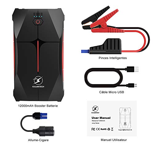 FLYLINKTECH Booster Batteria 12000 mAh 800 A (4,0 L Benzina, fino a 2,0 L Diesel) Portatile Jump Starter IP67 Impermeabile Booster Batteria Auto Moto Avviatore Auto con Lampe LED, Certificato UL
