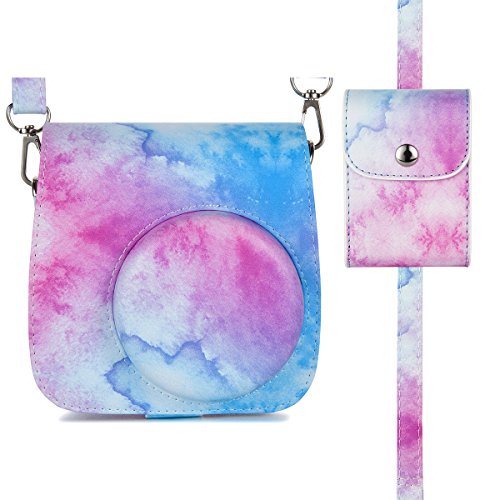 Flylther PU Borsa di protezione di cuoio della per Fujifilm Instax Mini 8 8+ Mini 9 Mini 7s Mini KT Foto e Lens - acquerello