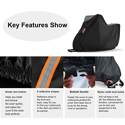 Flymer - Coprimoto impermeabile con fori di bloccaggio, 420D Oxford resistente, per moto, con strisce riflettenti, 265 x 105 x 125 cm, colore: Nero
