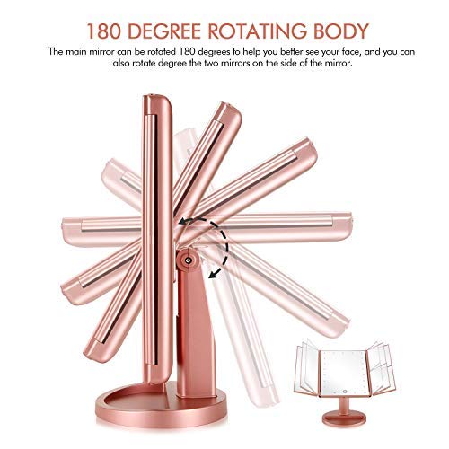 Flymiro Specchio Trucco, Specchio per Il Trucco con Luce 1x / 2X / 3X Trifold ingrandente 21 LED Touch Screen, Regolabile a 180° Specchio cosmetico per Il Trucco per viaggio(Oro Rosa)