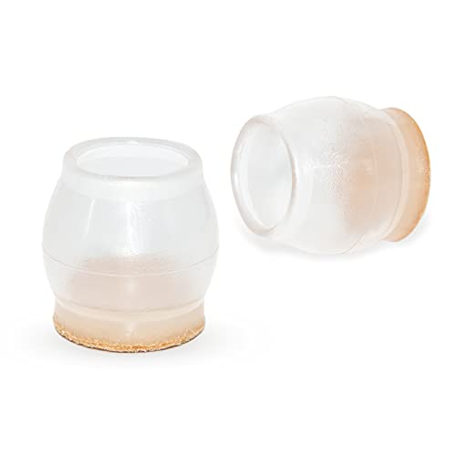 Flyshop, Protezioni per gambe per sedia con feltro, per prevenire graffi e ridurre il rumore, rotondo, adatto da 20 a 30 mm, trasparente, 24 pezzi