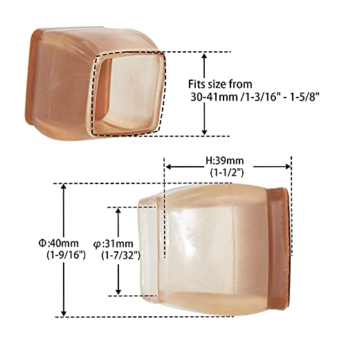 Flyshop, Protezioni per gambe per sedia con feltro, per prevenire graffi e ridurre il rumore, quadrato, adatto da 30 a 41 mm, marrone, 24 pezzi