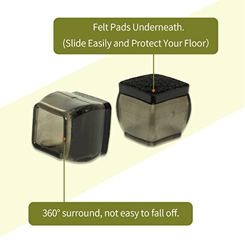 Flyshop, Protezioni per gambe della sedia, 16 pezzi, feltrini per prevenire graffi e ridurre il rumore, quadrati, per adattarsi a 3,5 cm a 1,5 cm, colore: nero