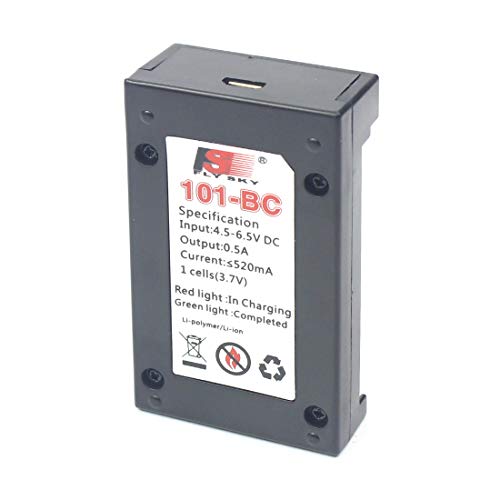 Il caricabatterie Flysky BC101 è molto utile per caricare una FlySky di ricambio, inoltre ricarica qualsiasi batteria agli ioni di litio a cella singola (3,7 v) con le dimensioni indicate nelle specifiche seguenti