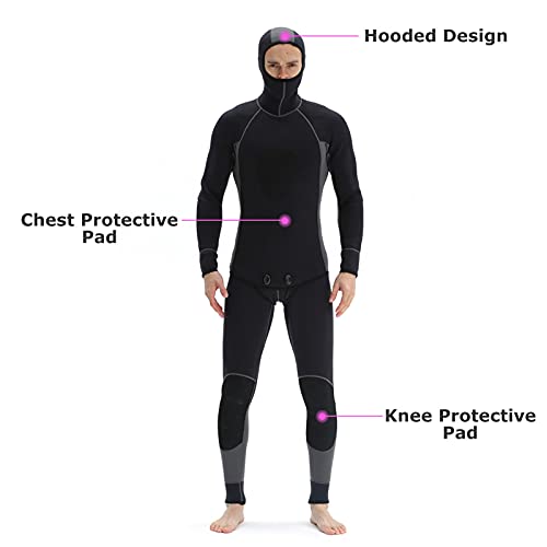 Flytise Mute da Nuoto da Uomo in Neoprene da 3 mm Muta da Sub a Maniche Lunghe con Cappuccio in 2 Pezzi per Immersioni subacquee Snorkel Pesca Subacquea Tuta da Surf Costume da Bagno Muta in Neoprene