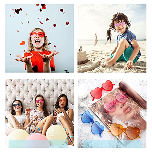 Fmlkic 8Paia Occhiali Senza Montatura a Forma di Cuore, Festa con Occhiali da Sole a Forma di Cuore, Occhiali da Sole a Cuore Senza Montatura, Occhiali da sole trasparenti Jelly Colori
