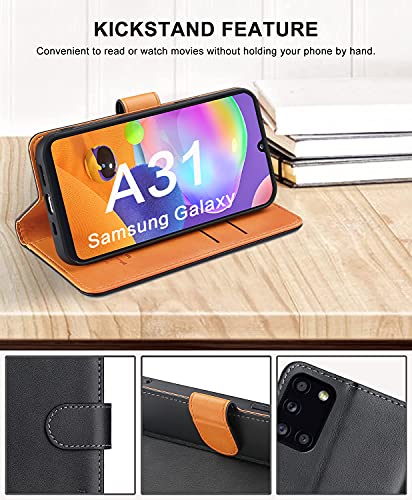 FMPCUON Cover Compatibile per Samsung Galaxy A31 - Custodia in Flip Pelle PU a Libro Portafoglio Case - Premium Folio Wallet Protettiva Caso, Ultra Sottile Protezione Cover Bumper, Nero