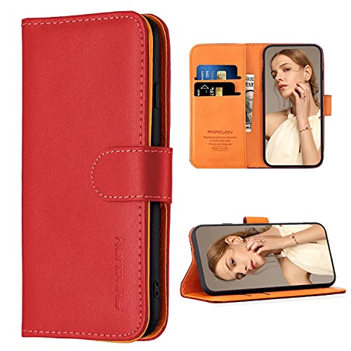 FMPCUON Cover Compatibile per Samsung Galaxy A51 - Custodia in Flip Pelle PU a Libro Portafoglio Case - Premium Folio Wallet Protettiva Caso, Ultra Sottile Protezione Cover Bumper, Rosso