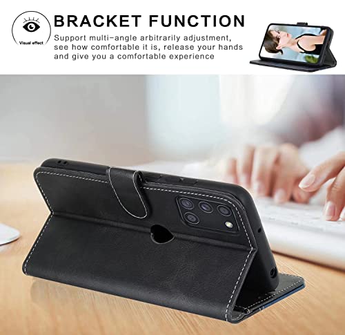FMPCUON Cover per Samsung Galaxy A21S, Custodia in Pelle Samsung Galaxy A21S Libro, Portafoglio Flip Protettiva Caso, Folio Wallet Case per Samsung Galaxy A21S - Blu Nero