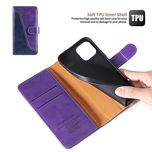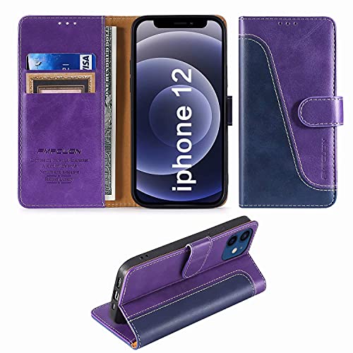 FMPCUON Custodia Compatibile per iPhone 12/iPhone 12 PRO Cover a Libretto in Pelle di qualità Premium Portafoglio Flip Caso [Slot][Supporto Stand] [Chiusura Magnetica],Blu/Porpora