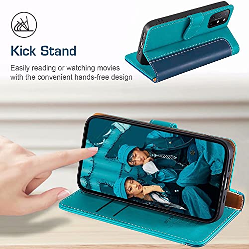 FMPCUON Custodia OnePlus 8T 5G,Premium Portafoglio Magnetica Flip Case Custodie Cover a Libro Custodia in Pelle per OnePlus 8T 5G,Blu/Verde