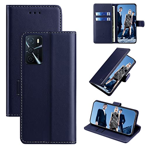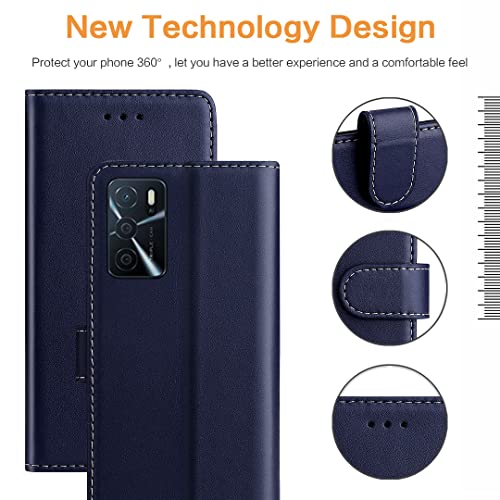 FMPCUON Custodia Oppo A16,Premium Portafoglio Magnetica Flip Case Custodie Cover a Libro Custodia in Pelle per Oppo A16,Blu