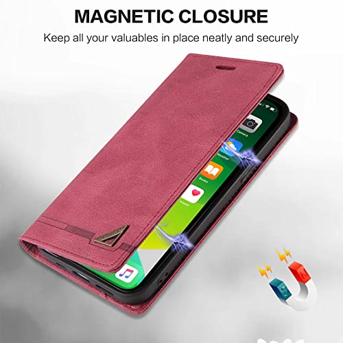 FMPCUON Custodia per Samsung Galaxy S22 Ultra,Flip Wallet Case in Pelle,[Slot] [Stand] [Chiusura Magnetica] PU Portafoglio Antiurto per Samsung Galaxy S22 Ultra,Case -Rosso