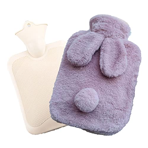 FNAKE Borsa Acqua Calda, Bottiglia d'acqua calda, dell'acqua calda,forma di coniglio dei cartoni animati, con morbida giacca di peluche,scaldamani antidolorifico per la terapia-1000 ml