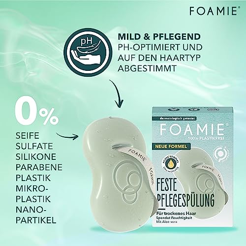 Foamie Balsamo solido per capelli secchi con aloe vera, balsamo per capelli per un'idratazione intensa, cura dei capelli 100% vegano, senza plastica, 45 g