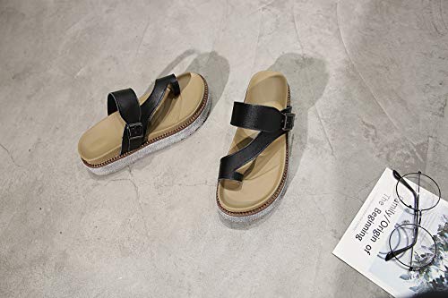 Foanerwi Sandali Comodi da Donna con Plateau Scarpe Aperte Estive con in Ecopelle Sandali con Punta Piatta in Pelle con Cinturini alla Caviglia Sandali con Fibbia Casual,Nero,37