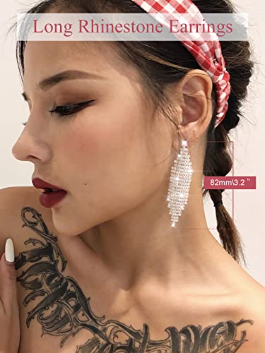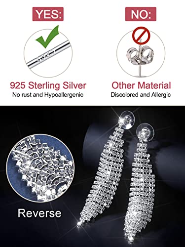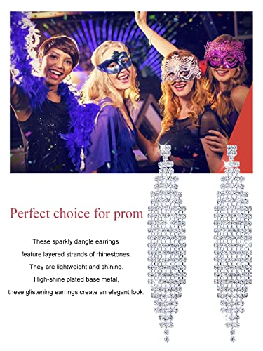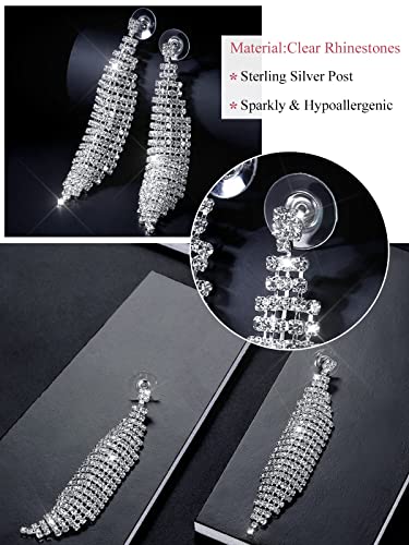 Focalook Orecchini Strass Pendenti Donna, Orecchini lunghi Pendenti Orecchini lunghi donna, per Serata Festa Ballo Sposa Matrimonio, con Confezione Regalo Natale, Argento