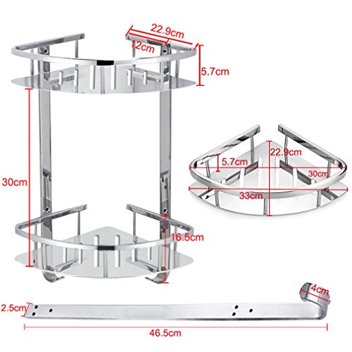 Foccoe, mensola per doccia doccia angolare con ripiani, cestino angolare a due livelli in acciaio INOX, organizzatore con montaggio a parete
