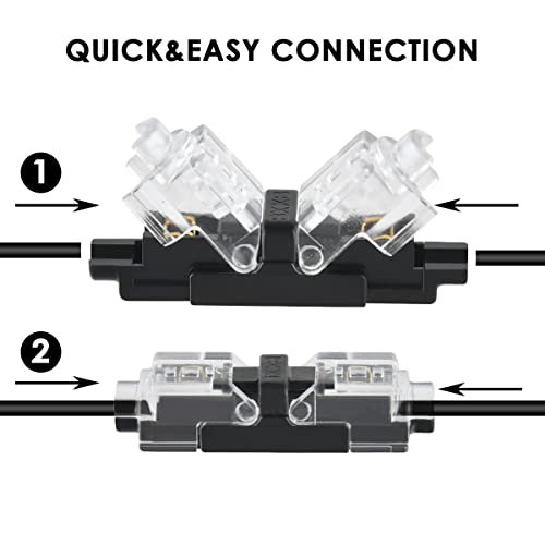 【Peel gratuito e nessuna saldatura richiesta】 - I connettori elettrici hanno un design innovativo del connettore a fibbia, non è necessario rimuovere il guscio del cavo e il filo rotto. Quando si utilizza il connettore elettrico, collegare il cavo direttamente al giunto. Puoi terminare la connessione in pochi secondi.