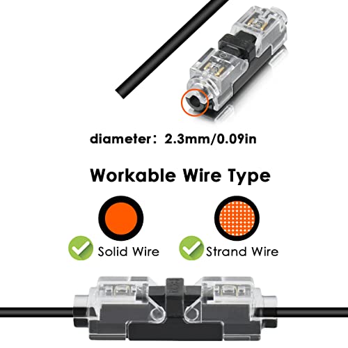 【Solo per cavo 20-22 AWG】 - Connettore a filo H adatto per cavo 20-22 AWG, tensione di esercizio: 12 V 24 V, corrente di lavoro: 0-10 A, temperatura di lavoro: -30 ° C ~ + 85 ° C.