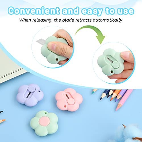 ✿ Mini Formato: 4,5 x 4,5 x 1,5 cm, rosa, verde, viola, 3 colori di taglierino tascabile sono sufficienti per soddisfare le tue esigenze quotidiane e puoi condividere con i tuoi amici.