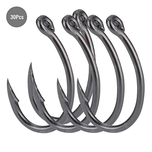 Focket 30Pcs Gancio da Pesca, ami da Pesca, ami Forti, Ganci in Acciaio al Carbonio(8#)