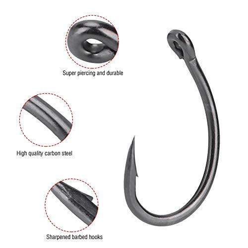 【AMI DA PESCA DI BUONA QUALITÀ】Costruzione in acciaio al carbonio di prima qualità con corpo dell'amo appiattito per garantire resistenza e durata. Il foro dell'occhiello chiuso è abbastanza grande da permettere al filo di passare facilmente. La punta dell'amo più affilata con punta sfalsata assicura una migliore penetrazione e nessun pesce perso.