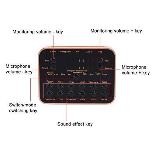 Focket Scheda Audio Live Robusta e Durevole, 12 Tipi di Effetti sonori Supporto Dorato Gridando Scheda Audio del Computer, 8 Tipi Cambia modalità Audio per Trasmissione Live, Canzoni Net K