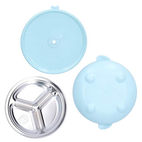 Fockety Ciotole per Neonati, Piatti per Bambini in Acciaio Inossidabile 304, Simpatico Isolamento a Prova di perdite a 3 Scomparti Riutilizzabile per Bambini Adulti(Blue)