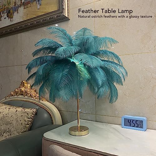Fockety Lampada da Tavolo in Piuma di Struzzo, 30 Piume di Struzzo, 3 Colori Dimmerabili, Senza Fili, Ricaricabili Tramite USB, con Controllo Tattile, Luce Notturna, Lampada da Comodino (Verde Scuro)