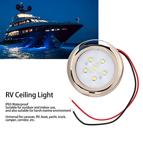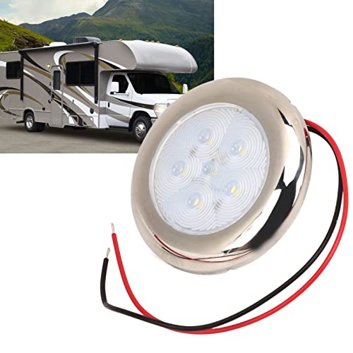 Fockety Plafoniera 12V, Plafoniera Impermeabile IP65, Pannello Luminoso Ad Anello in Acciaio Inossidabile 316 con 6 Chip LED per Camper, Barca, Camper, Furgone, Rimorchio, Camion, Ralla