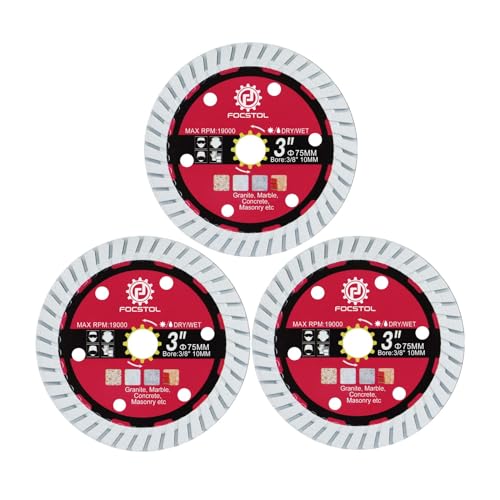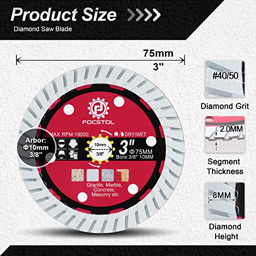 FOCSTOL Disco Diamantato per Calcestruzzo - 3 pezzi 75mm x 10mm Lama Diamantata per Granito Marmo Calcestruzzo Muratura per Smerigliatrice Angolare