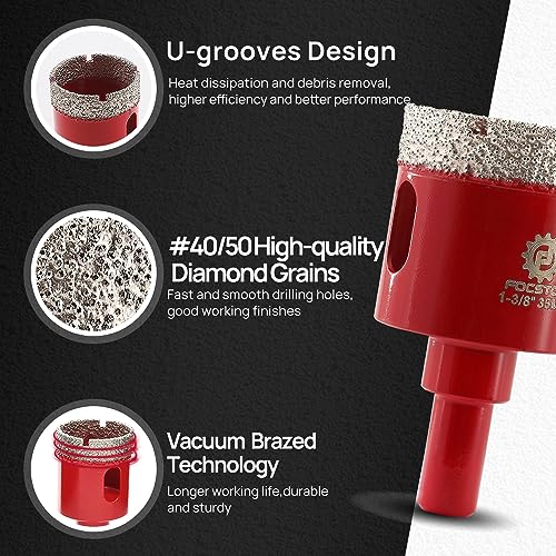 FOCSTOL Punte per Trapano Diamantate - 8 pezzi 6/8/10/12/20/25/32/35mm Sega a Tazza Diamantata per Porcellanato Ceramica Piastrelle Marmo Granito