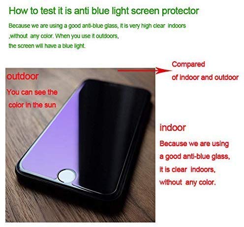 [Nota ]Siamo una fabbrica, usiamo un buon vetro blu e tecnologia anti-luce blu. Il vetro non è di alcun colore. La pellicola di vetro deve essere installata sul telefono cellulare, quindi può essere vista all'aperto per vedere la luce blu nel vetro. Vetro temperato anti luce blu compatibile con iPhone 8 7 6s 6.