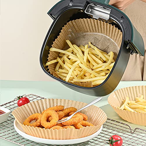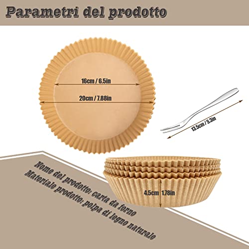 Fodera di Carta Rotonda per Friggitrice ad Aria calda,100Pcs 160 * 45 mm Carta da Forno,Monouso Pergamena Antiaderente,Non Perforata,Impermeabile ad Alta Temperatura,per Air Fryer,microonde,Arrostire