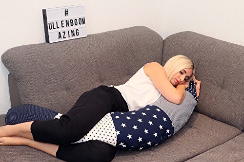 Fodera per cuscino da allattamento ULLENBOOM ® stelle blu (fodera per cuscino da 190x38, cuscino di supporto)