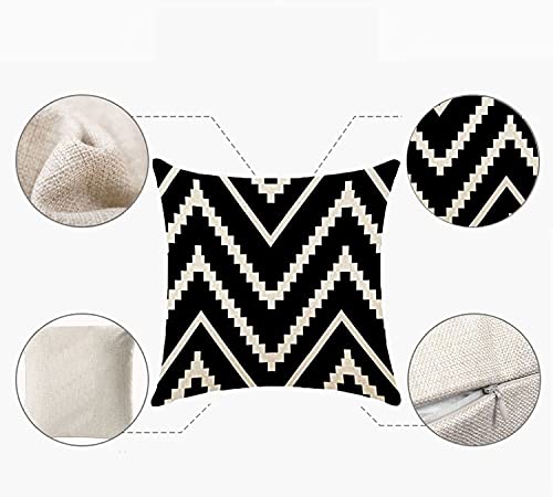 Fodera per Cuscino, Geometria Moderna Copricuscini Decorativi in Cotone e Lino con Cerniera Invisibile Fodera per Cuscini, Set di 4 Cuscino per Soggiorno Sedia Divano, 45 x 45 cm