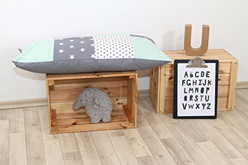 Fodera per cuscino patchwork ULLENBOOM ® verde menta, grigio (40x80, cotone, ideale come cuscino decorativo nella cameretta per bambini)