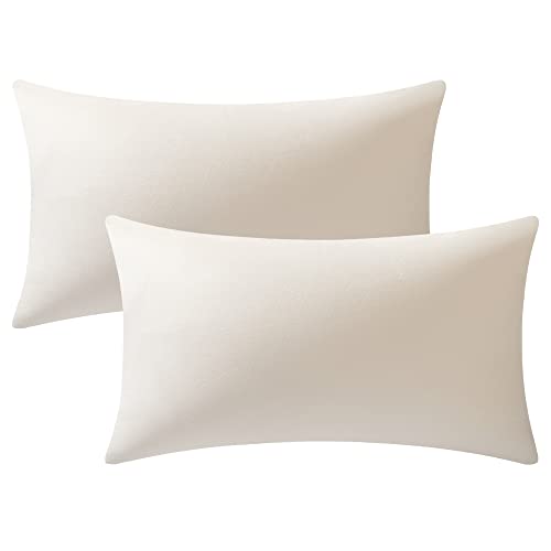 Fodera per Cuscino, 2 Pezzi, Fodere per Cuscino Decorate in Velluto Morbido, Federe per Cuscino, Copri Cuscino Euro per Fattoria, Divano, Sofà, Bambini, Interni ed Esterni, 30 x 50 cm, Crema