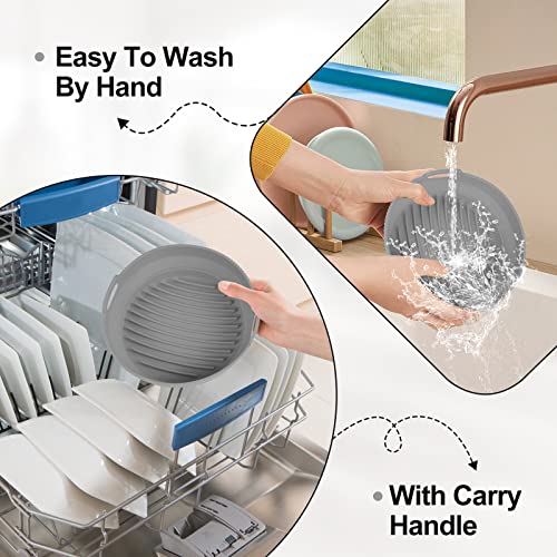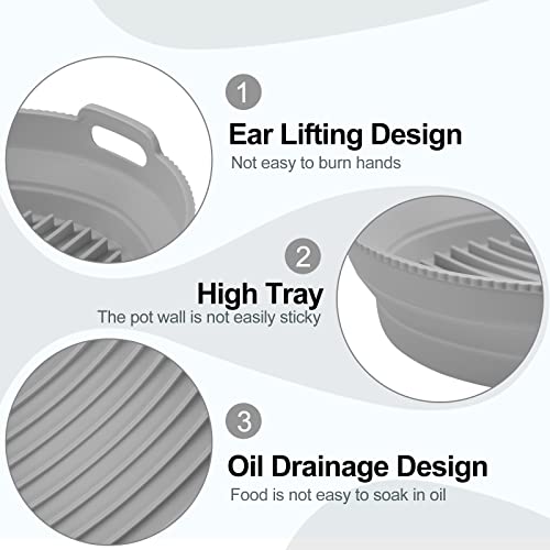 Fodera per Friggitrice Ad Aria Rotonda Pieghevole Silicone, 8.4inch Cestello per Friggitrice Ad Aria Riutilizzabile da con Vassoio Separatore, Sostituzione del Cestello per Friggitrice Ad Aria (GREY)