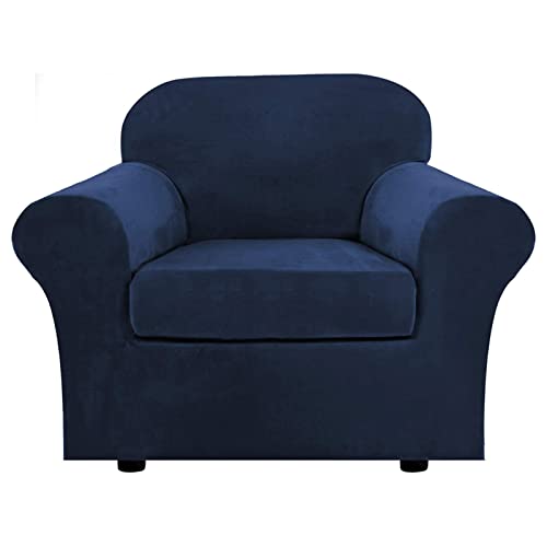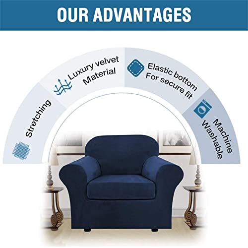Fodera per Poltrona Elasicizzato Peluche in Velluto 2 Pezzo,Fodere Copridivani Copri Poltrona 1 Posti,Fodera per Divano con Bracciol,Antiscivolo Copertura Poltrona,Navy Blue