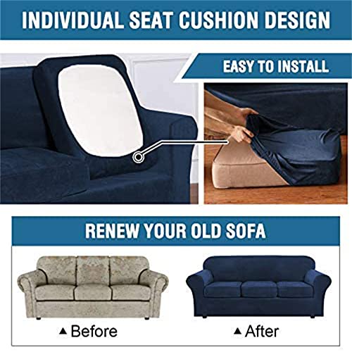[Materiale in peluche in velluto elasticizzato] Fodera per divano elasticizzata utilizza un morbido tessuto in peluche in velluto, lussuoso e durevole, per un tocco morbido e confortevole. Colore solido con uno stile di design semplice e chic, il rivestimento del divano è realizzato in tessuto 94% poliestere 6% elastan, c'è un elastico sottostante, che avvolge strettamente il fondo del divano.